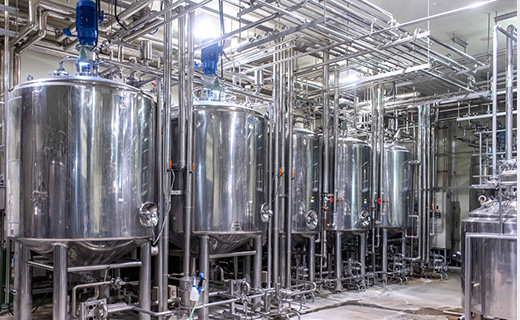 Here the mixed, sterilized, homogenized liquid is stored temporarily in tanks.
