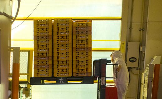 The packed liquid is stored temporarily in the fermentation cellar. Under precise temperature control, the lactic acid bacteria act to produce delicious yogurt. After fermentation, the yogurt is cooled again to retain its delicious taste.
