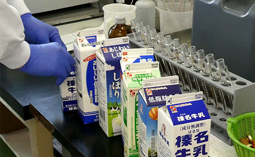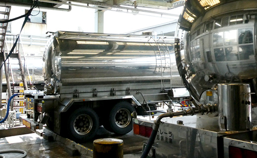 Milk is delivered in tanker trucks from cooler stations and about 80 dairy farmers, mainly in Gunma Prefecture. The milk is delivered fresh from the cows every morning. Inspection of ingredients is conducted at this stage.