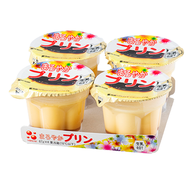 - Raw milk, saccharides (high-fructose corn syrup, sugar), caramel sauce, margarine (contains soy), dairy products, corn starch, egg yolks (contains egg), gelatin, salt, gelling agents (agar, gelatin, polysaccharide thickener), flavoring, thickener (modified starch), carotene coloring